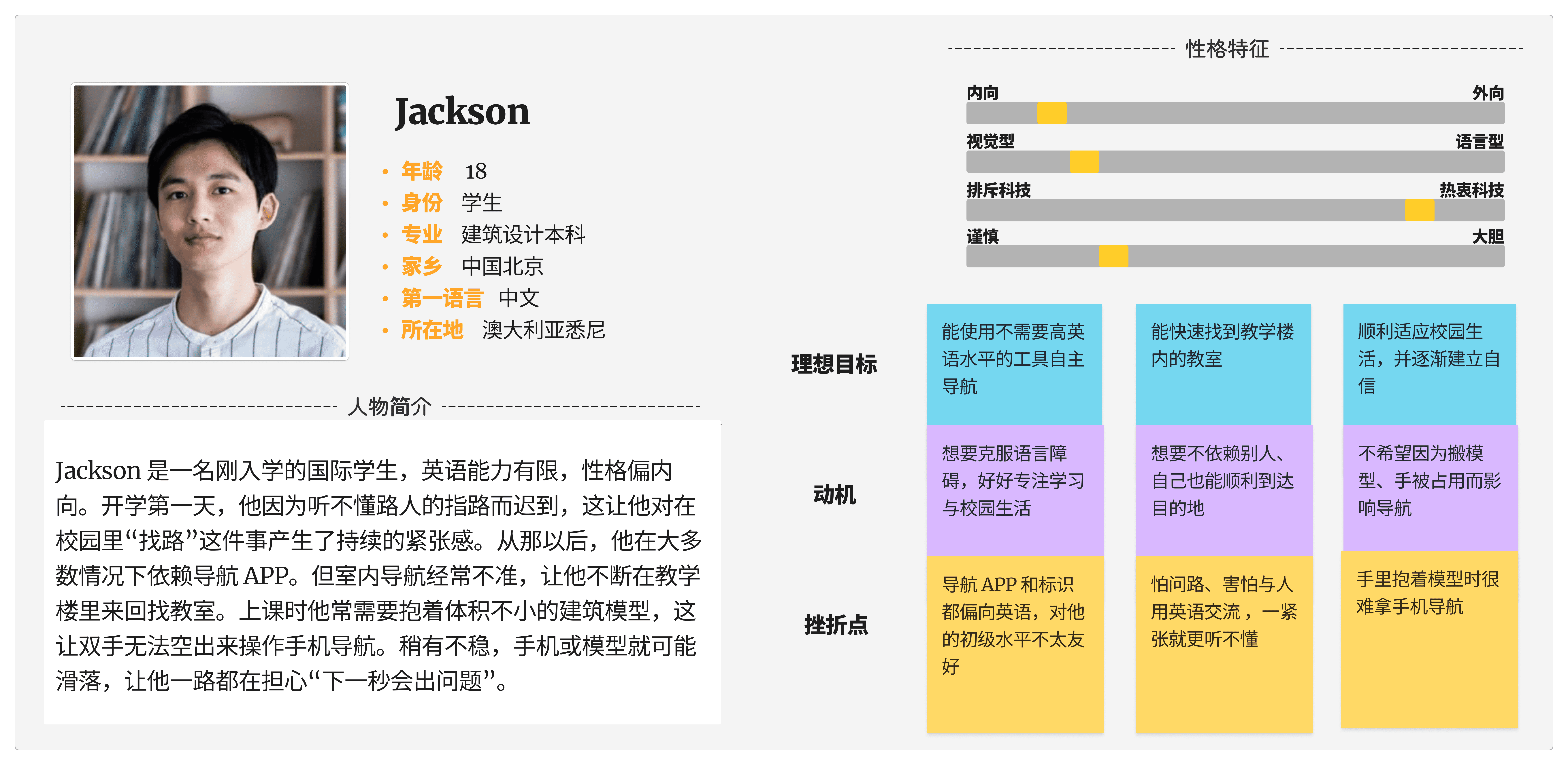 随着悉尼大学国际新生数量不断增加,许多初到校园的学生在适应阶段普遍面临两类挑战:语言理解困难与对校园环境的不熟悉。校园本身建筑分布复杂、动线庞大,而公共标识多以英文呈现,使得新生在导航过程中经常出现“看不懂、找不到、走不对”的情况。现有的导航工具(如 Lost Campus、Maze Map、Google Maps)虽然能提供基础定位,但在真实校园情境中,例如开学初期、路径尚未熟悉或标识信息不够清晰时,往往难以提供足够支持,导致迷路、焦虑和迟到等常见问题。因此,提升国际新生在校园中的导航体验,成为本项目关注的核心关注点。