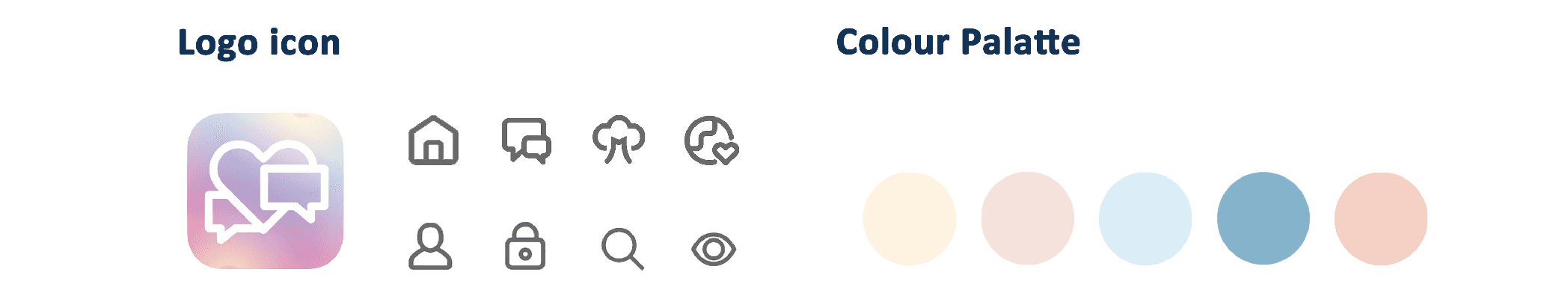 我们为产品打造了一套温和、易识别的视觉语言。图标以以柔和轮廓为主,强调友好与可接近性;配色采用柔和的渐变与低饱和色,我们希望传达安全、舒缓与信任的情绪基调。在统一的视觉语言之上,我们进一步构建了面向失语症家庭的两项核心功能模块,让日常沟通更顺畅,也让康复过程更具可感知的陪伴感与积极反馈。