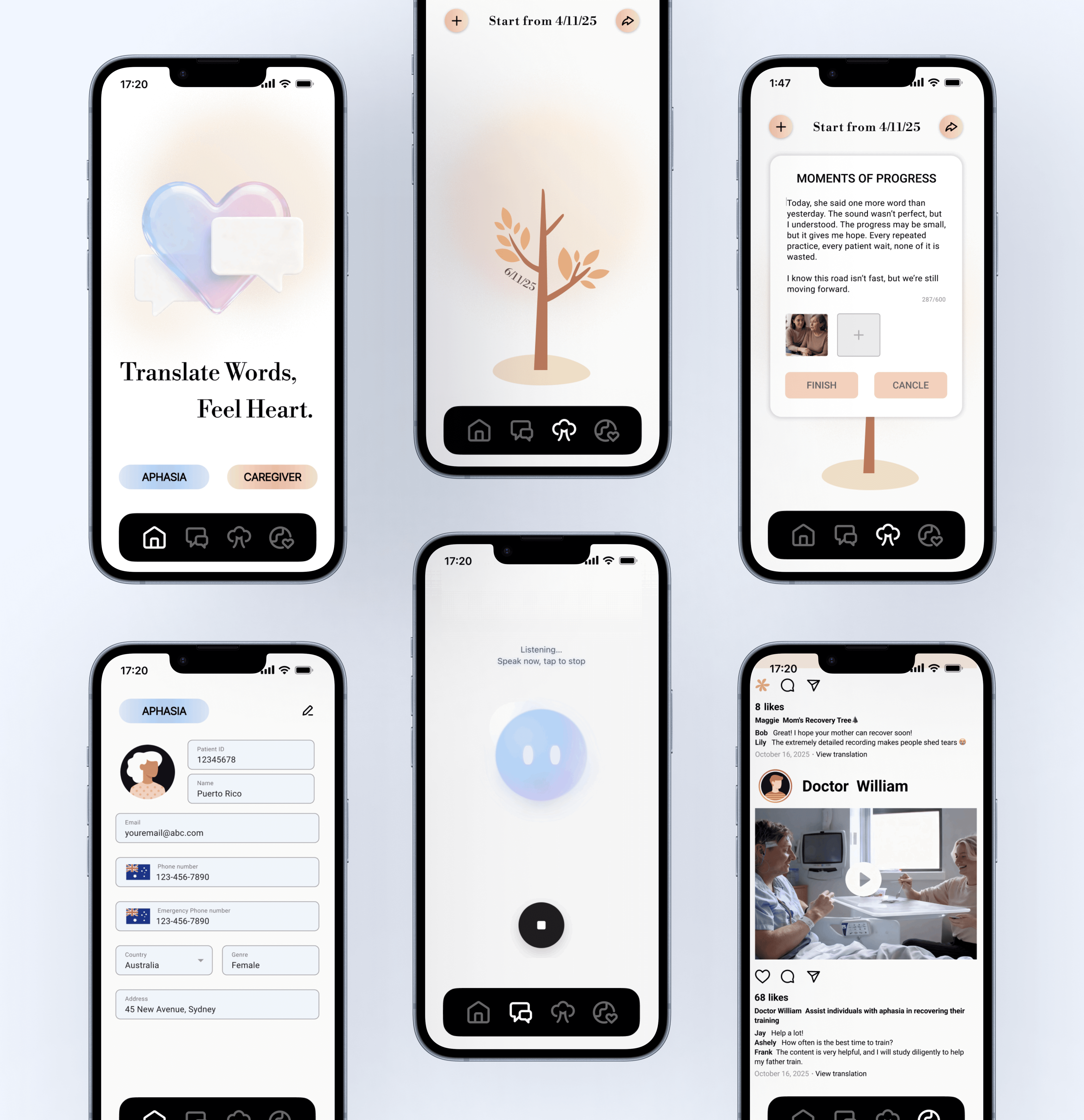 通过这个项目,我们将对失语症家庭的洞察转化为可被真实使用的产品体验。从理解日常沟通中的痛点,到构建语言重构与情绪反馈机制,我们不断探索如何让技术在设计中真正发挥价值、服务于沟通本身。HeartTranslator 体现了设计与产品策略上的综合考量:以更直观、简单的方式提升沟通效率,让照护者与患者都能获得稳定而持续的支持。它不仅是一款沟通工具,更是一种让交流变得更清晰、更安心的陪伴式体验。